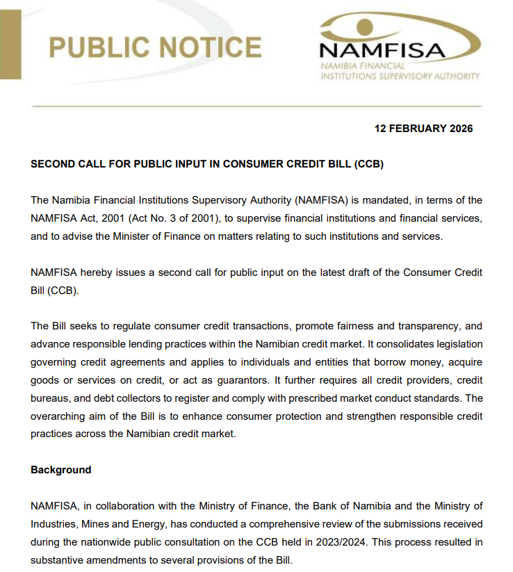 The Namibia Financial Institutions Supervisory Authority (NAMFISA) is an independent entity established under Act No. 3 of 2001 to regulate and supervise financial institutions. It operates in the public interest and is funded through levies imposed on the industry.